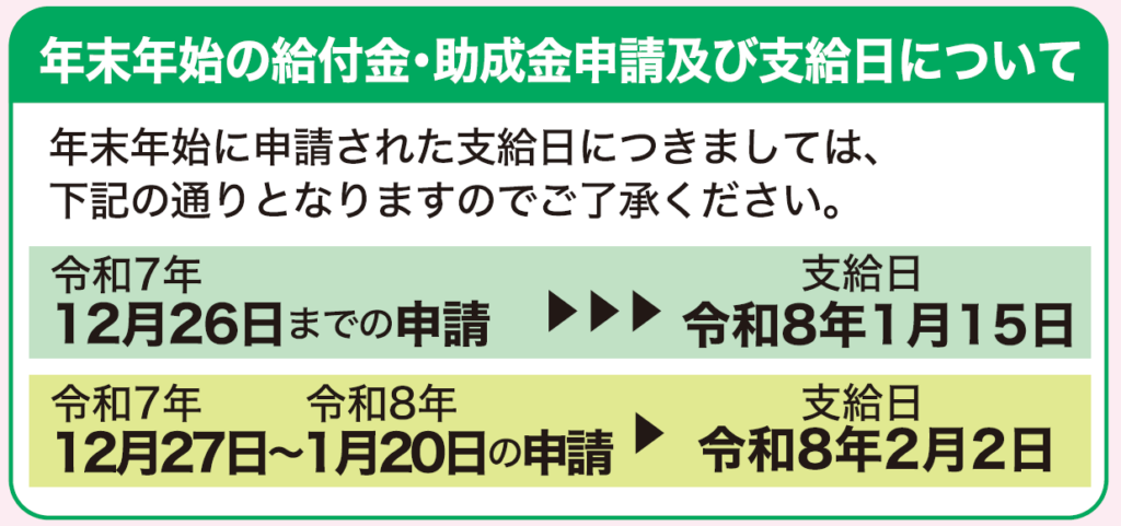 年末年始の給付金・助成金申請及び支給日について